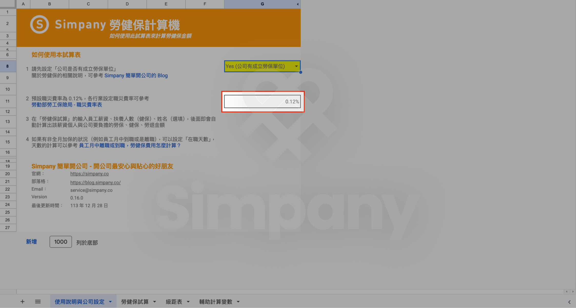 為因應每年法規調整,Simpany 每年會更新勞健保計算機。最新版本與歷史版本更新請參 考以下連結: